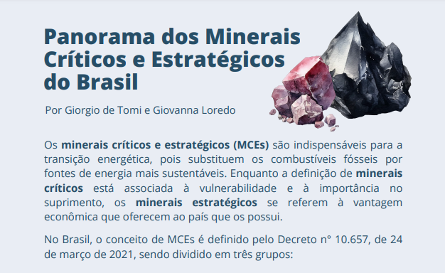 Infográfico “Panorama dos Minerais Críticos e Estratégicos do Brasil”
